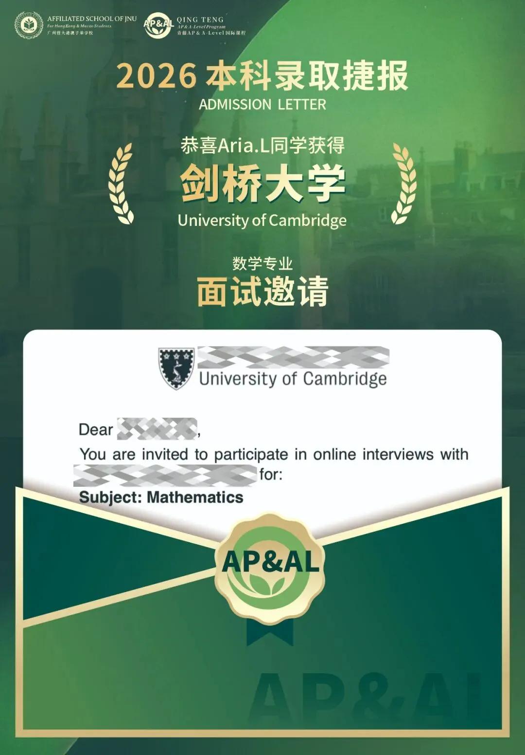 这次暨大斩获的剑桥(数学专业)面邀offer,来自英东校区青藤AP&AL国际课程。