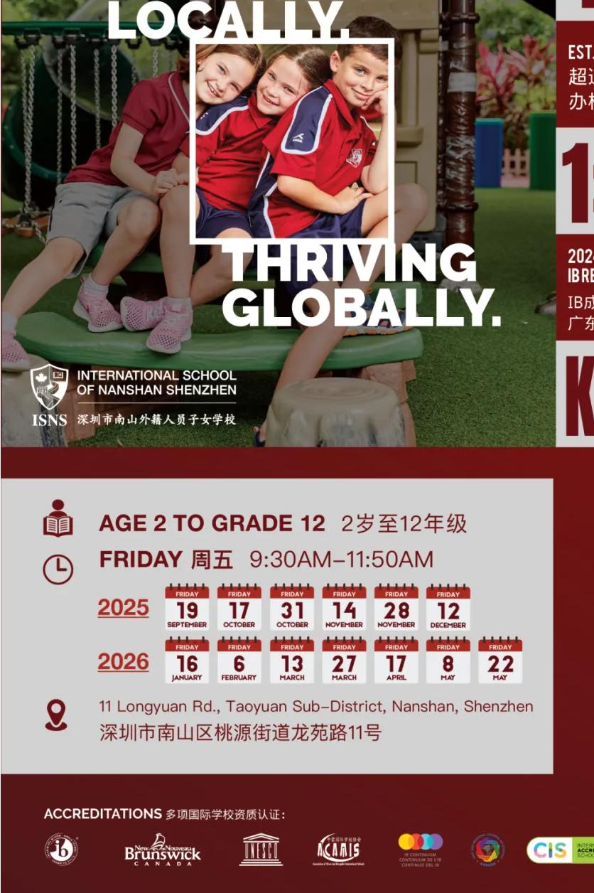 深圳市南山外籍人员子女学校2025-2026学年近期校园开放日将于11月28日、12月12日举行!探校名额告急,想深入了解学校的家庭记得提前预约~