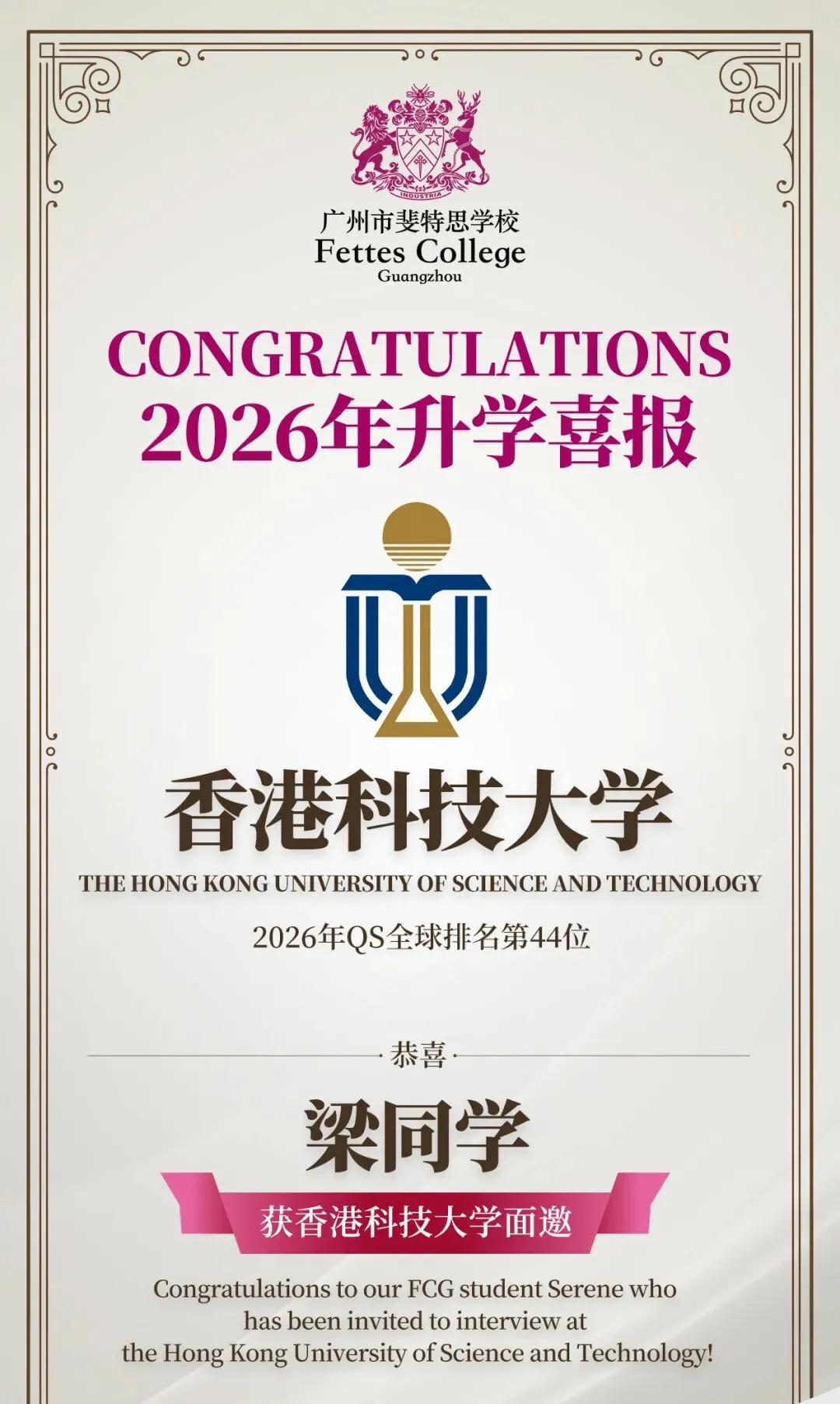 继2024、2025届毕业生实现“牛剑双收”并创下100%学子获世界QS前25大学录取的辉煌战绩后,广州斐特思26届毕业生再次以实力续写传奇。截至11月27日,26届毕业生已收获包括牛津、剑桥、帝国理工、伦敦大学学院在内的多封世界顶尖学府录取与面试邀请。